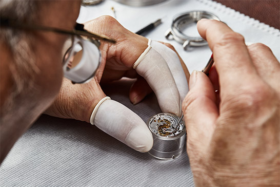 确认订单,技师拆解腕表、表壳和机芯,取出指针和表盘。